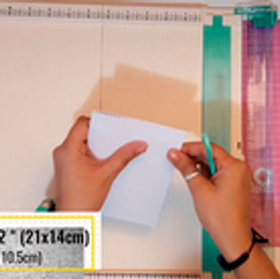 Para comenzar utilicé una cartulina opalina banca que recorte a la medida de un tarjeta tradicional por lo cual corte a 8 1/4 x 5 1/2″ (21 x 14cm) y doble por la mitad de la parte más larga a 4 1/8″ (10.5cm)