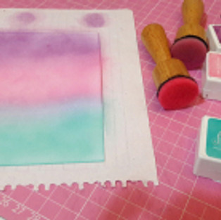 Después es el turno de hacer el fondo para esto utilicé mis tintas Antique de diverstamp en tonos Elizabeth, Peoni y Turquesa la verdad me encanta el efecto degradado que se puede lograr con estas tintas facilmente.
