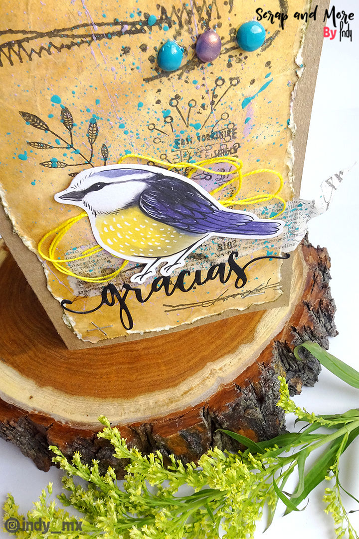 Para cumplir con el requisito de los animalitos decidí elegir este pajarito que es de la colección de die de Vicki Boutin decidí utilizar la técnica de mix media porque no sé, se siente como más libertad al crear y se me hizo una buena propuesta para una tarjeta; además de que últimamente los proyectos hechos en base kraft me traen loca.